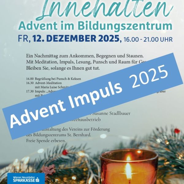 Das Bildungszentrum St. Bernhard hat über Weihnachten geschlossen. Ab 7. Jänner sind wir wieder zu unseren normalen Öffnungszeiten für Sie erreichbar.